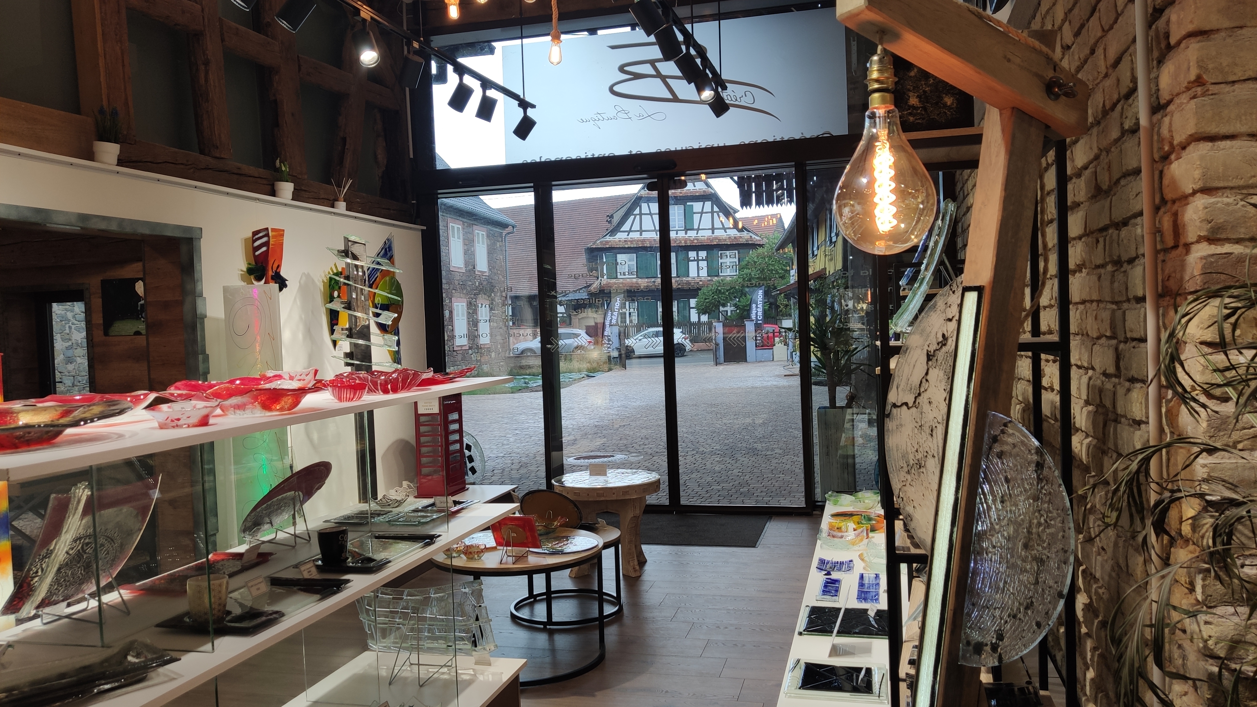 Très bon accueil dans un magnifique atelier installé dans une grange, belle découverte de l'art du Fusing, une belle boutique pour des idées cadeau. On a hâte de récupérer notre travail. J'ai enfin notre abreuvoir pour les oiseaux en forme de fleur et mon mari a fait une lampe. On a passé un superbe moment et on est vraiment ravi de cette expérience.